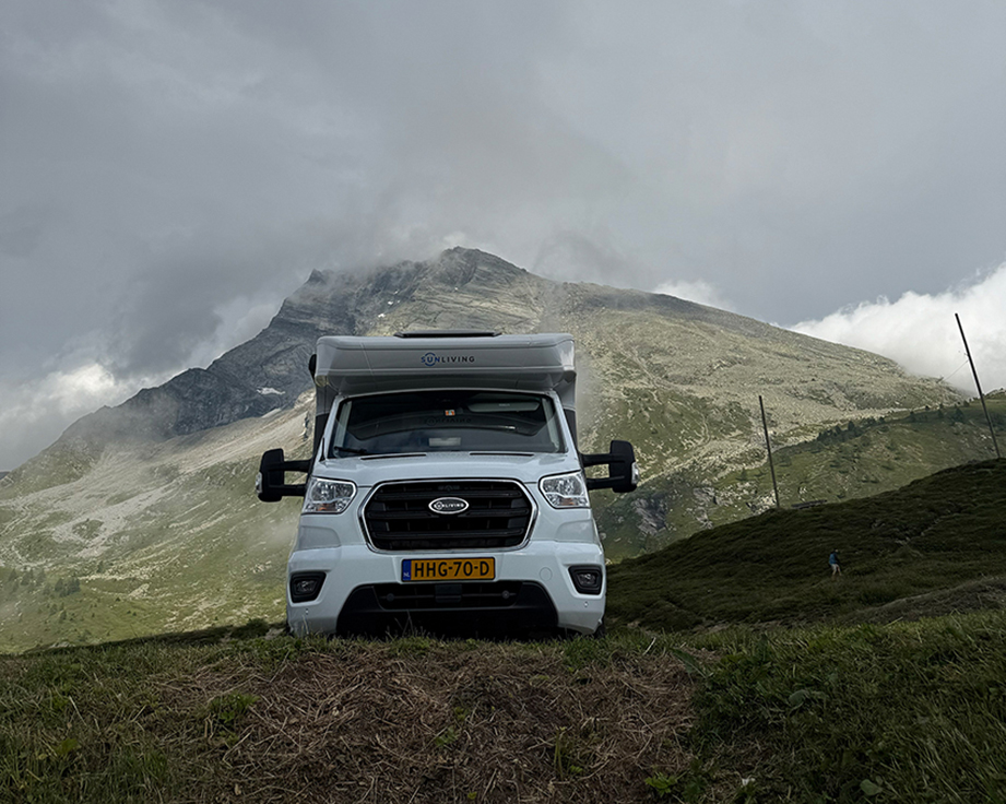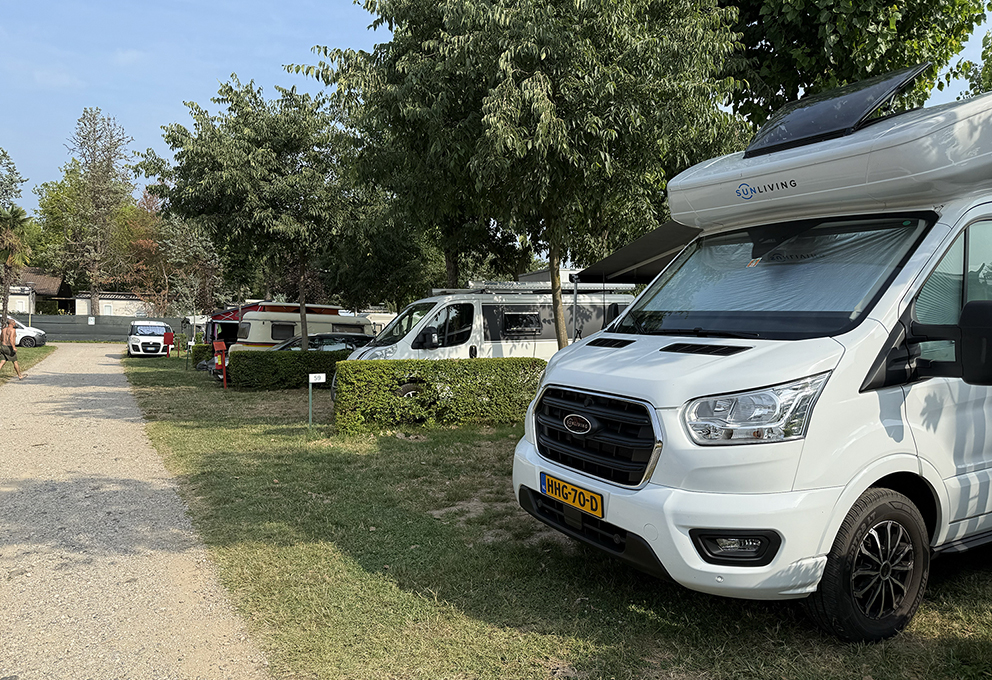 Acampar es libertad. Y aunque he acampado toda mi vida, nunca había sido tan intensamente como este verano. Viajar en autocaravana realmente te da una sensación de libertad. Lo experimentamos el segundo día, después de salir de los Países Bajos el día anterior. Después de nuestra primera noche, un difícil viaje por Alemania y muchos atascos en Suiza, llegamos a Kandersteg, Suiza, por la tarde. Desde aquí, queríamos tomar el tren para coches a través del túnel de Lötschberg. Un trayecto de 20 minutos te lleva a Goppenstein, al otro lado de la montaña. De ahí, continuaríamos por el paso de Simplon hacia Italia. Dependiendo del tiempo, queríamos decidir si pasar la noche inmediatamente después de la montaña o tomar el paso de Simplon para continuar hacia Italia. La decisión se tomó rápidamente cuando nos topamos con una fuerte tormenta al otro lado de la montaña. Llamamos a un camping en el lago Maggiore, en Italia, para preguntar si tenían plazas libres y a qué hora abría la recepción, y pusimos rumbo al lago, a unas dos horas en coche, donde también estaba lloviendo en ese momento.