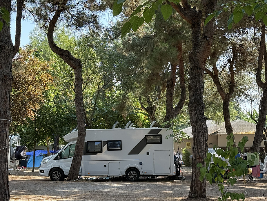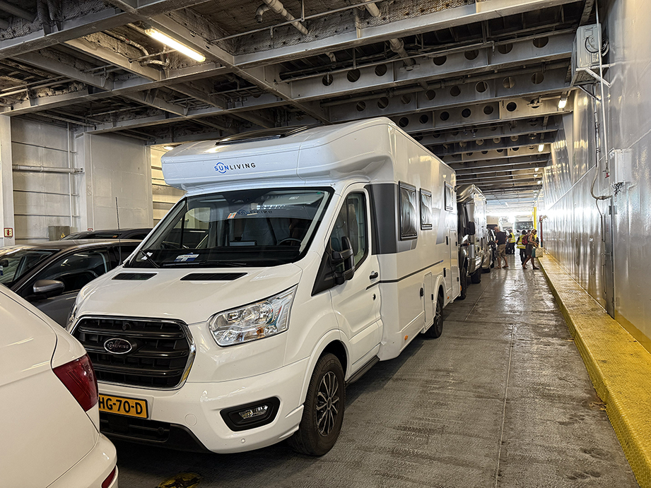 Durante nuestro viaje por carretera, nos alojamos en un total de dos campings alemanes, cuatro campings italianos y ocho campings griegos. También hicimos dos viajes en barco: de Italia a Grecia y viceversa. Estacionamos la Sun Living en la cubierta del aparcamiento y pasamos la noche en una cabina